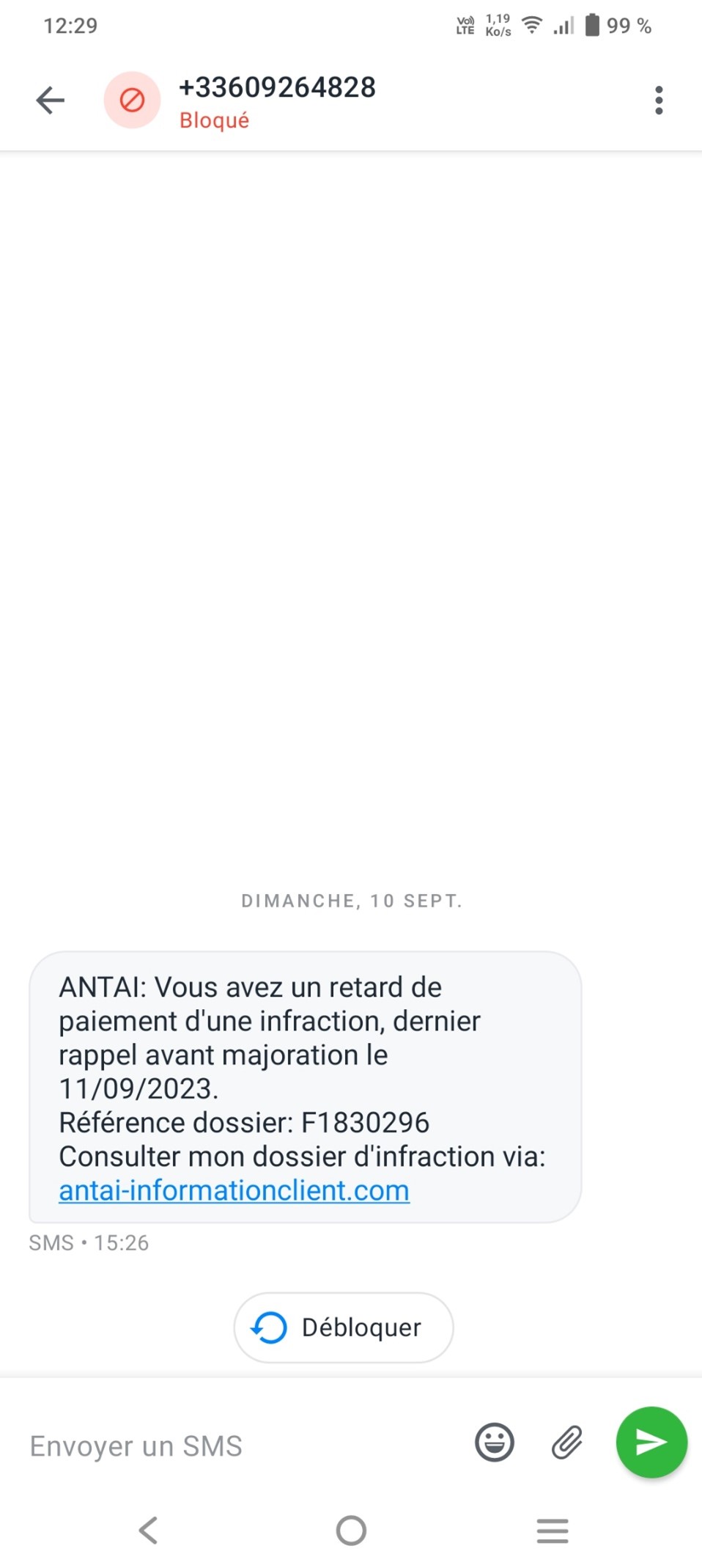 En revanche, le service ANTAI (Agence Nationale du Traitement Automatisé des Infractions) est bien français et comme il se trouve en tête de SMS, votre regard va se porter sur lui. Ce SMS est flagrant mais les points énumérés juste au-dessus sont à appliquer pour tout type de SMS du même genre.
