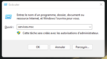 Donc ce service est dans C:\Windows\system32 et de ce fait, impossible de le supprimer de Windows. Il est d’ailleurs déconseillé de le supprimer, sans quoi Windows pourrait ne pas démarrer car il détecterait qu’un composant important et légitime manque au démarrage. Donc, pour se faire, il faut lancer une fenêtre d’exécution puis tapez services.msc