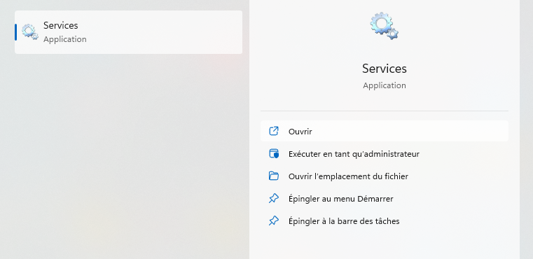 Sinon, vous recherchez services depuis la barre de recherche et vous l’exécutez en tant qu’administrateur.